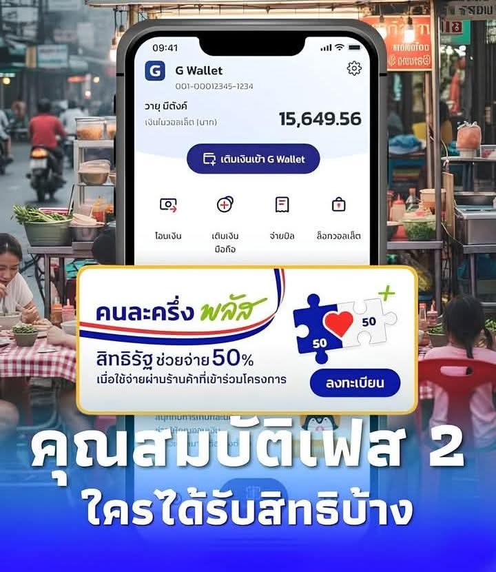 คุณสมบัติผู้มีสิทธิลงทะเบียนคนละครึ่งพลัสเฟส 2