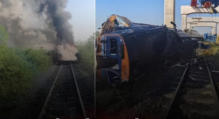 เสียชีวิตพุ่ง 10 ราย เครนก่อสร้าง หล่นทับรถไฟ 3 ตู้ เสียงดังสนั่น บาดเจ็บกว่า 40 ราย