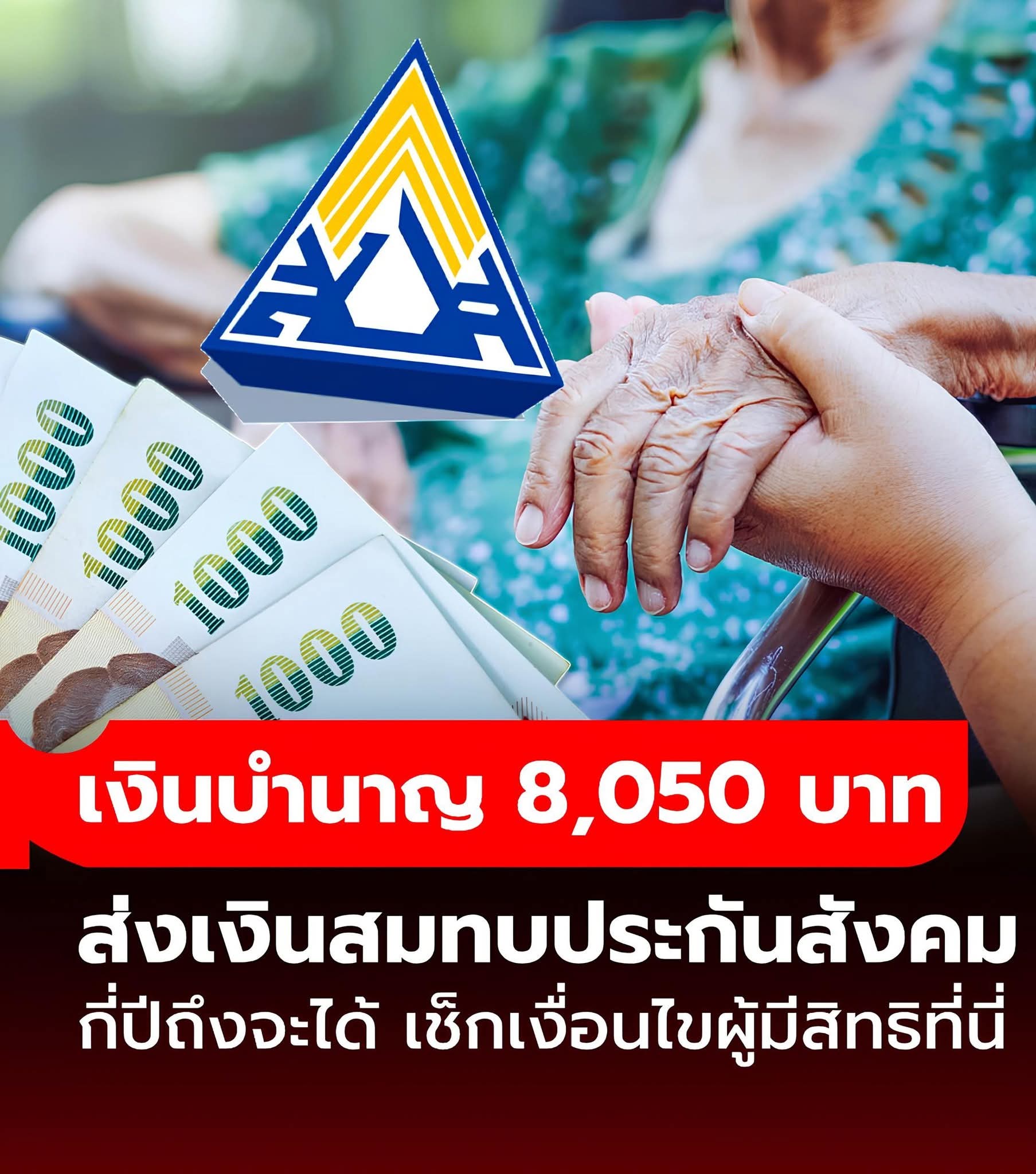 เงินบำนาญ 8,050 บาทต่อเดือน ต้องส่งเงินสมทบประกันสังคมกี่ปี ถึงจะมีสิทธิได้รับ เช็กเงื่อนที่นี่