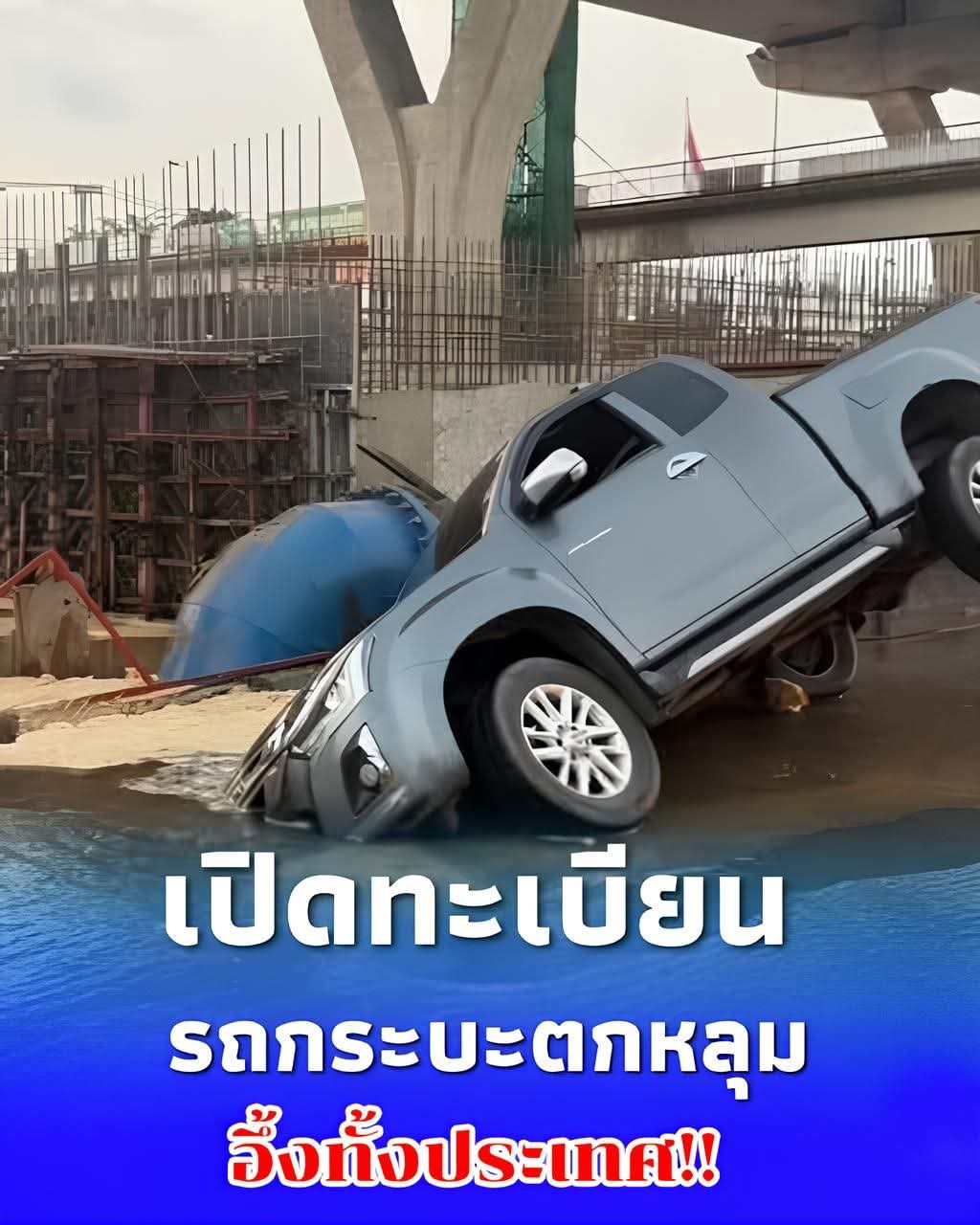 เปิดทะเบียนรถกระบะ ขับมาดีๆอยู่ๆตกหลุมถนนพระราม 2 ที่ทรุดตัว บุญรักษาโชคดีปลอดภัยไม่เป็นอะไรมาก มีแต่รถกระบะที่เสียหาย
