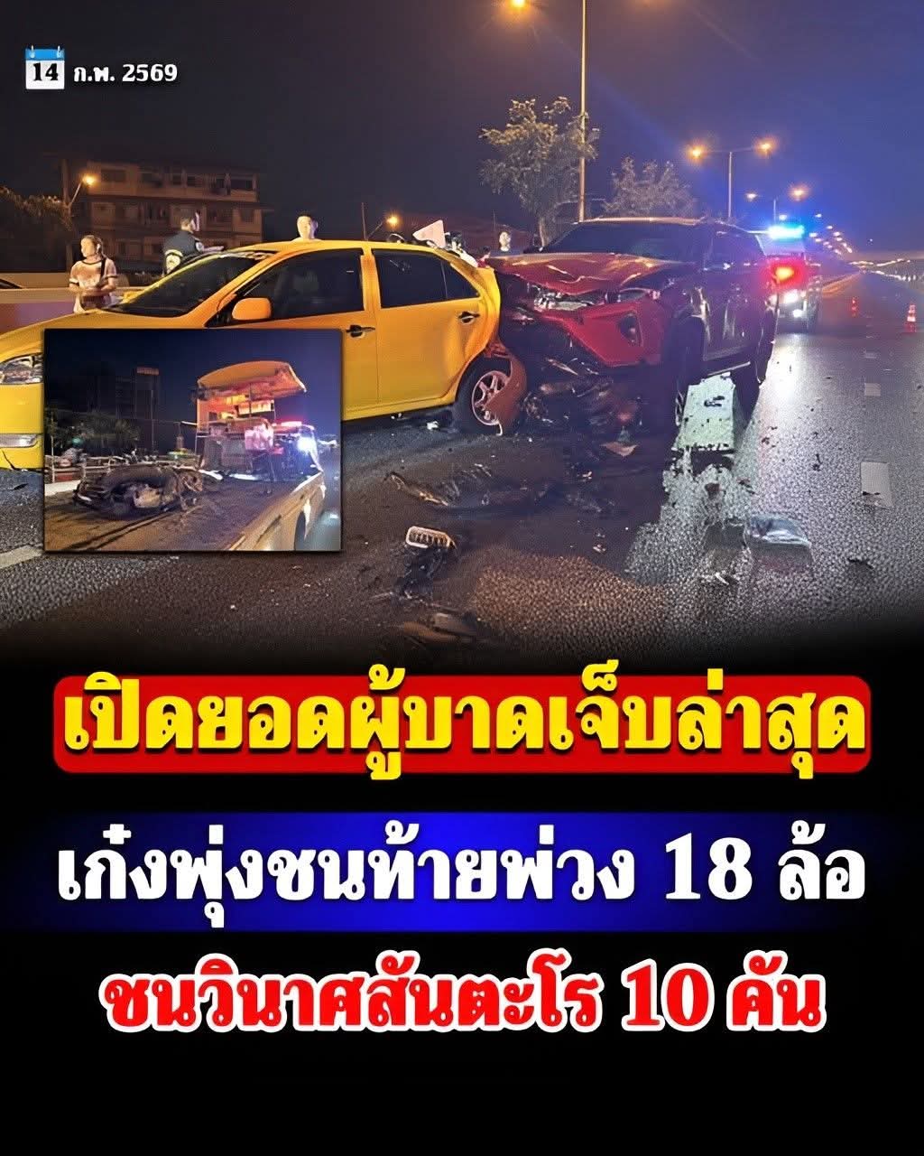เมื่อเวลา 00.15 น.วันที่ 14 ก.พ.69 เจ้าหน้าที่ตำรวจสภ. บางศรีเมือง จ.นนทบุรี พร้อมเจ้าหน้าที่มูลนิธิร่วมกตัญญู เดินทางเข้าตรวจสอบหลังจากรับแจ้งมีอุบัติเหตุรถชนกันหลายคันมีผู้บาดเจ็บหลายราย เหตุเกิดถนนนครอินทร์ขาออกก่อนข้ามแยกบางสีทอง ต.บางไผ่ อ.เมืองนนทบุรี จึงเร่งเข้าตรวจสอบ