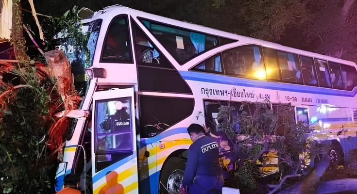 ด่วน! รถทัวร์จะไปดูงานระยอง พลิกคว่ำทางลงเขาศาลปู่โทน ดับ 17 บาดเจ็บกว่า 40 ราย