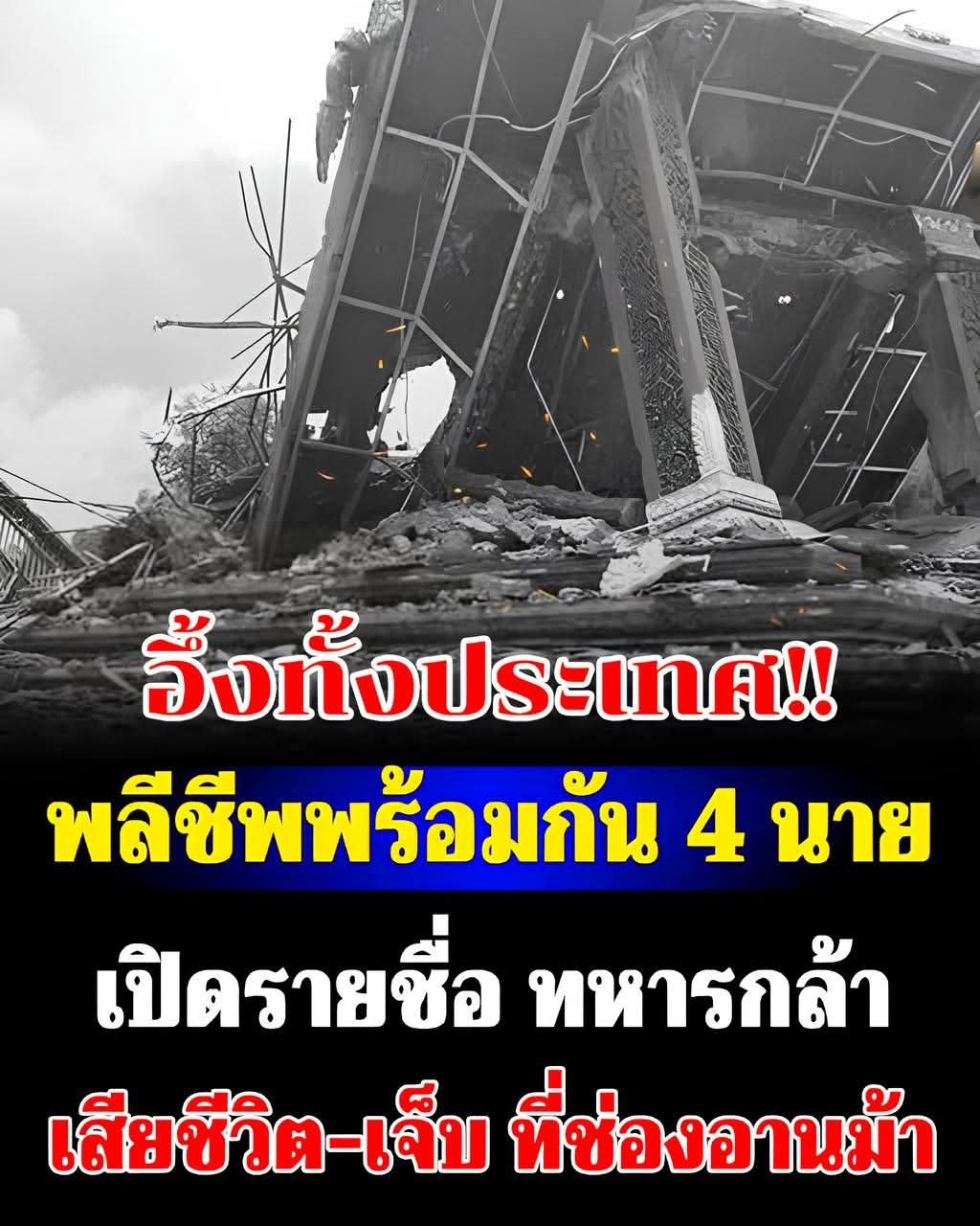 แต่ล่าสุด เพจเฟซบุ๊ก Army Military Force รายงานว่า ด่วน!! มีรายงานเคสดำ ทหารกล้าพลีชีพพร้อมกัน 4 นายที่บริเวณเนิน 677 #ช่องอานม้า ขอสดุดีทหารกล้า RIP.