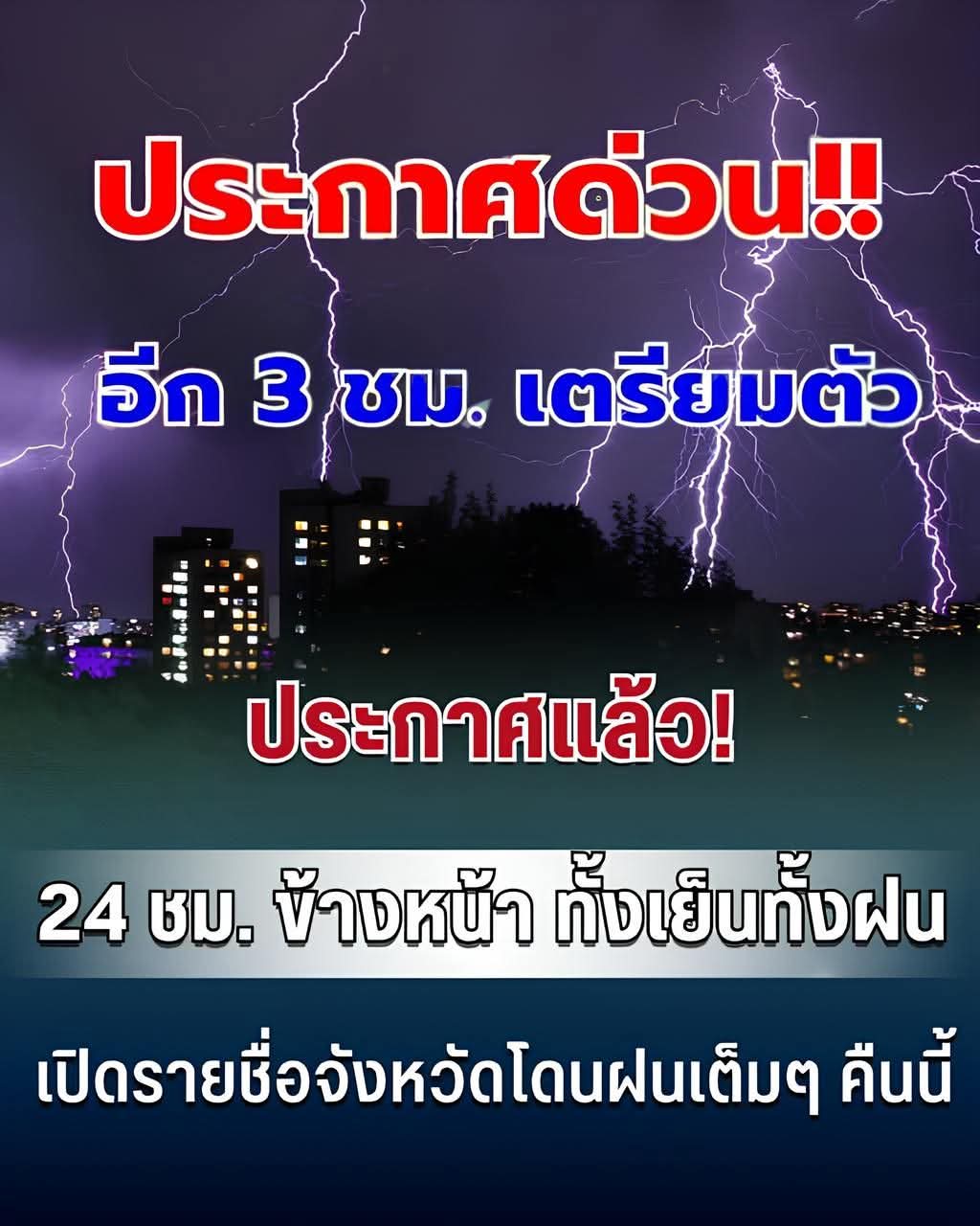 กรมอุตุฯ ประกาศแล้ว 24 ชม. ข้างหน้า ทั้งเย็น-ทั้งฝน เปิดรายชื่อจังหวัดโดนฝนเต็มๆ คืนนี้