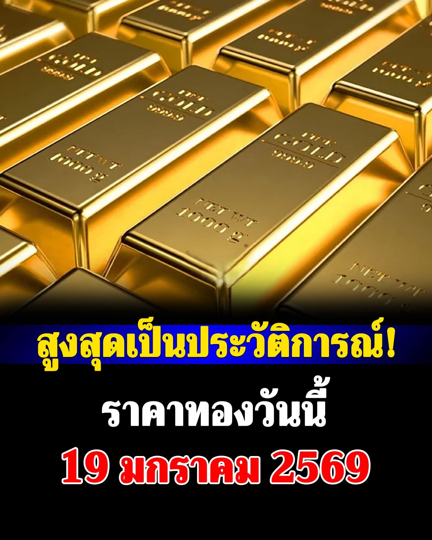 ราคาทองวันนี้ 19 มกราคม 2569 โดย สมคมค้าทองคำ ประกาศีราคาทองครั้งที่ 1 (เปิดตลาด) เมื่อเวลา 09.04 น. ปรับตัวขึ้นแรง 500 บาท แตะระดับสูงสุดเป็นประวัติการณ์ครั้งใหม่บริเวณ 68,950 บาท
