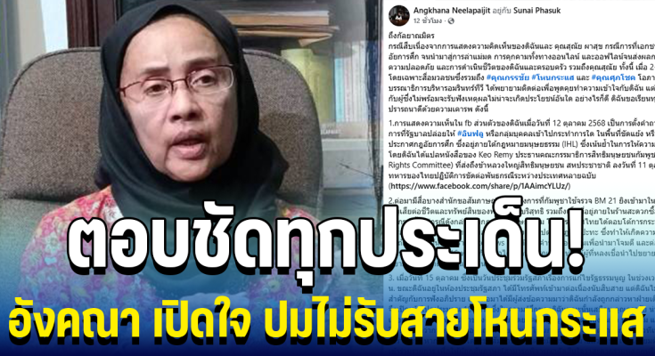 วันที่ 20 ตุลาคม 2568 นางอังคณา นีละไพจิตร สมาชิกวุฒิสภา และอดีตกรรมการสิทธิมนุษยชนแห่งชาติ (กสม.) เคลื่อนไหวผ่านเฟซบุ๊กส่วนตัว Angkhana Neelapaijit โพสต์ข้อความชี้แจงกรณีถูกวิพากษ์และคุกคามทางออนไลน์ ภายหลังจากการแสดงความคิดเห็นเกี่ยวกับกรณีภาคเอกชนและอินฟลูเอนเซอร์เข้าไปในพื้นที่ที่ประกาศกฎอัยการศึก ระบุว่า