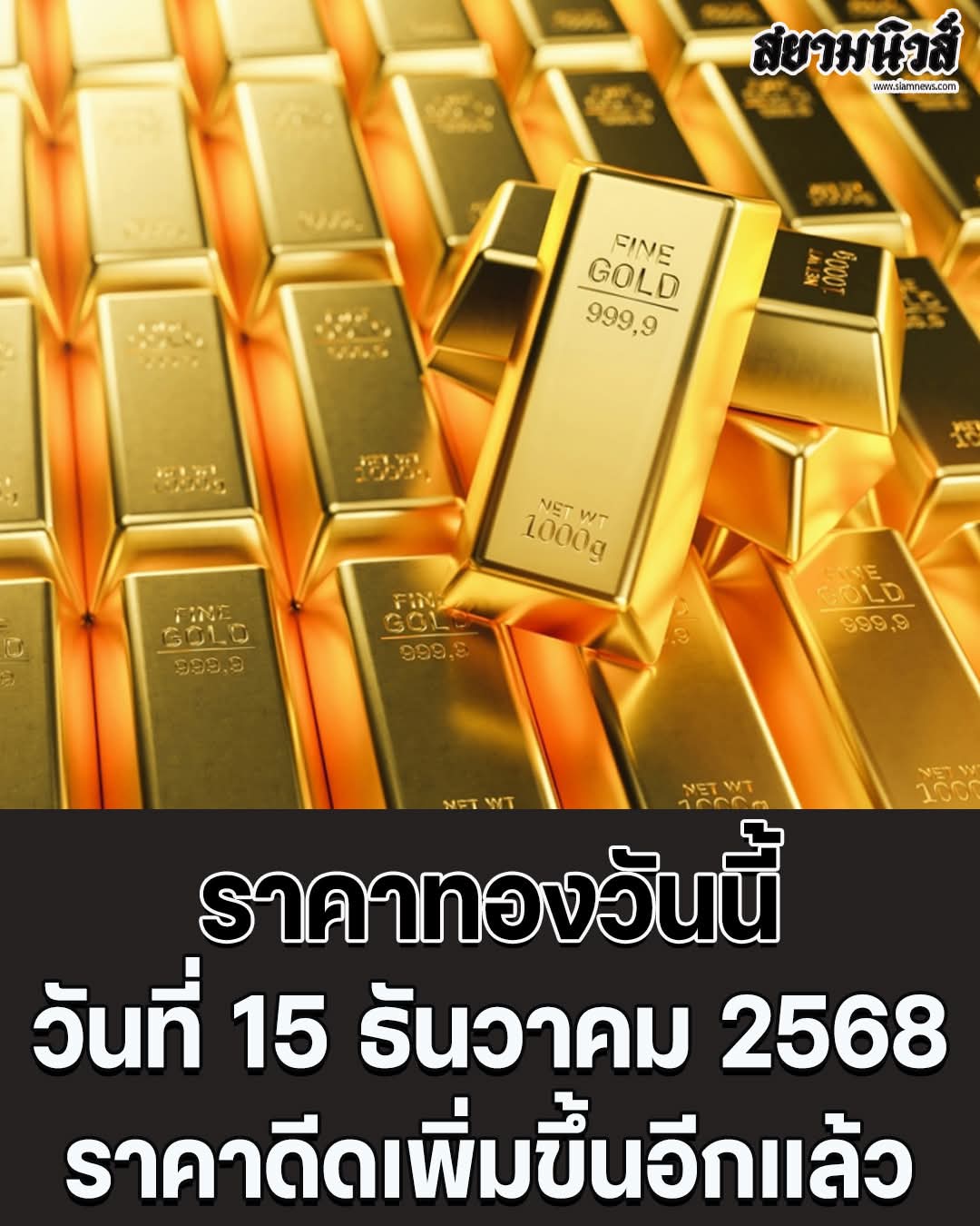 รายงานราคาทองวันนี้ประจำวันจันทร์ที่ 15 ธันวาคม 2568 ประกาศครั้งที่ 1 (เปิดตลาด) เมื่อเวลา 09.03 น. ปรับเพิ่มขึ้น 200 บ.
