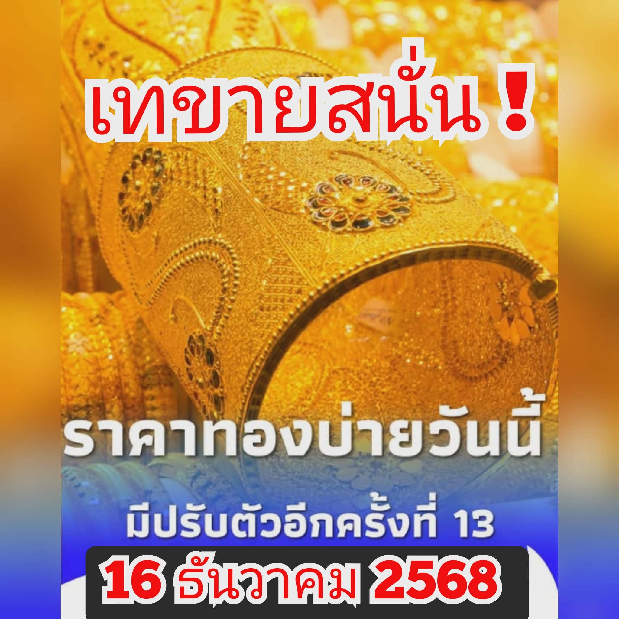 ราคาทองวันนี้ 16/12/68 ราคาทองคำในประเทศไทยช่วงเช้าเปิดตลาดปรับตัวลดลง 300 บาท ระหว่างวันยังคงปรับตัวอีกหลายครั้ง ล่าสุดปรับลดอีก ครั้งที่ 13
