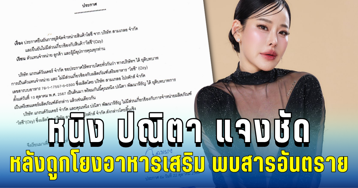 หนิง ปณิตา แจงชัด หลังชื่อถูกโยงอาหารเสริมแบรนด์ดัง พบสารอันตราย