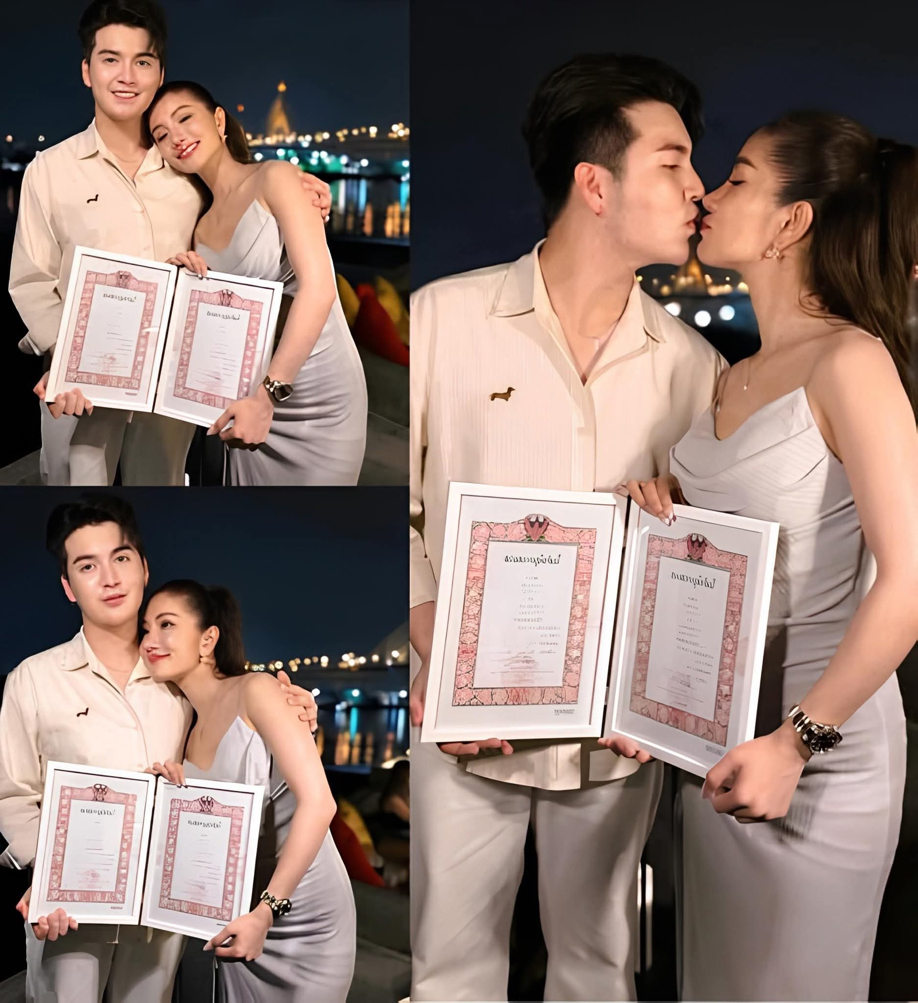 โดยทางด้านเจ้าบ่าวป้ายแดงอย่างหนุ่มซัน ได้ออกมาโพสต์ภาพคู่พร้อมใบทะเบียนสมรสผ่านโซเชียลส่วนตัว เพื่อประกาศข่าวดีให้แฟนเพลงได้รับรู้ พร้อมระบุข้อความเปิดใจถึงความรู้สึกในครั้งนี้ว่า ตนเองได้กลายเป็น “เขยอีสาน” อย่างเต็มตัวแล้ว และรู้สึกภาคภูมิใจที่ได้สร้างครอบครัวที่ถูกต้องและชัดเจนร่วมกับผู้หญิงที่เขารักที่สุด