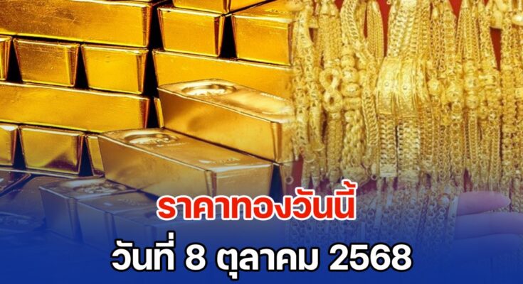 รายงานราคาทองวันนี้ประจำวันพุธที่ 8 ตุลาคม 2568 ประกาศครั้งที่ 1 (เปิดตลาด) เมื่อเวลา 09.04 น. ปรับเพิ่มอีก 500 บาท