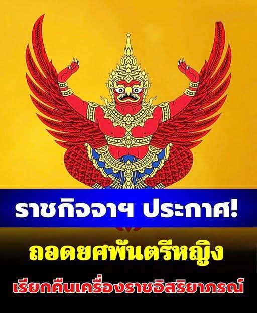 พร้อมกันนี้ ยังทรงพระกรุณาโปรดเกล้าโปรดกระหม่อมพระราชทานพระบรมราชานุญาตให้เรียกคืนเครื่องราชอิสริยาภรณ์ ได้แก่ ชั้นตริตาภรณ์มงกุฎไทย จัตุรถาภรณ์ช้างเผือก จัตุรถาภรณ์มงกุฎไทย และเหรียญจักรมาลา ที่ได้รับพระราชทาน ตามข้อ 6 และข้อ 7 (8) ของระเบียบสำนักนายกรัฐมนตรีว่าด้วยการขอพระราชทานพระบรมราชานุญาตเรียกคืนเครื่องราชอิสริยาภรณ์ พ.ศ. 2548