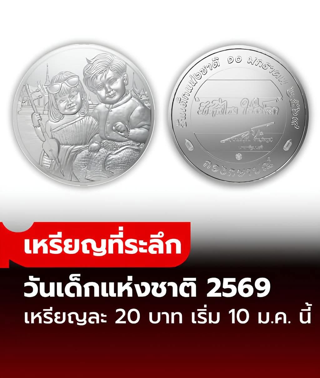 เหรียญที่ระลึกวันเด็กแห่งชาติ 2569 กรมธนารักษ์ จำหน่ายเหรียญละ 20 บาท เริ่ม 10 ม.ค. 69 เป็นต้นไป