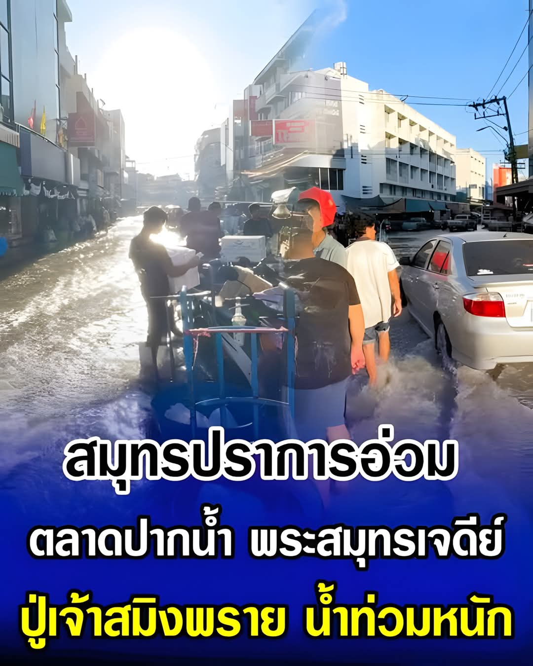 ฝั่งพระสมุทรเจดีย์ น้ำท่วมสูงบริเวณ ถนนสุขสวัสดิ์ ด้านข้าง โรงพยาบาลพระสมุทรเจดีย์, วงเวียนหอนาฬิกาพระสมุทรเจดีย์, ถนนคลองสรรพสามิตร, และ วัดเอี่ยมประชามิตร สถานการณ์น้ำท่วมสูงในหลายพื้นที่ได้ส่งผลกระทบต่อการสัญจรของประชาชนในจังหวัดสมุทรปราการอย่างหนัก ขอให้ผู้ใช้รถใช้ถนนเพิ่มความระมัดระวังและติดตามข่าวสารอย่างใกล้ชิด