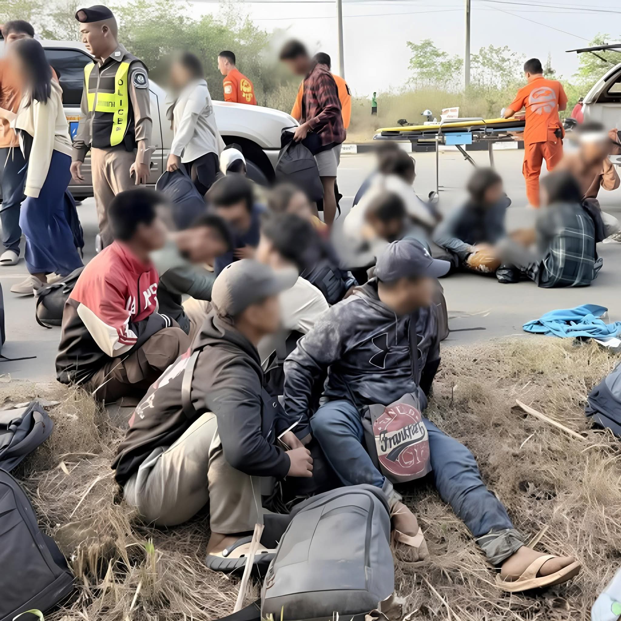 ไม่หยุดหย่อน ตร.ทล. สกัดจับแรงงานเถื่อน ซิ่งหนีเสียหลักพลิกคว่ำ นอนเจ็บเกลื่อนถนน
