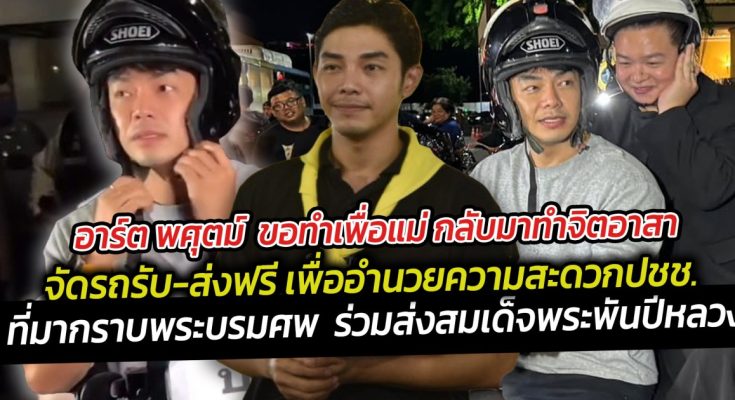 อาร์ต พศุตม์ ขอทำเพื่อแม่ กลับมาทำจิตอาสา จัดรถรับ-ส่งฟรี เพื่ออำนวยความสะดวกประชาชน ที่มากราบพระบรมศพ ร่วมส่งสมเด็จพระพันปีหลวง รวมตัวกันมาขับมอเตอร์ไซค์จิตอาสา รับส่งประชาชนที่มาร่วมส่งเสด็จสมเด็จพระนางเจ้าสิริกิติ์ พระบรมราชินีนาถ พระบรมราชชนนีพันปีหลวง ที่สนามหลวง อำนวยความสะดวกให้กับประชาชน