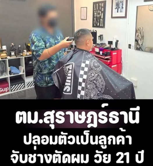 จากนั้นทางด้าน ด.ต.ชินศักดิ์ ชินฝั่น ผบ.หมู่ ตม.สุราษฎร์ธานี ได้แฝงตัวทำทีเป็นลูกค้าเข้าไปตัดผมที่ร้านดังกล่าว ซึ่งขณะนั้นภายในร้านมีช่างตัดผมชาวเมียนมาอยู่ในร้านเพียงคนเดียว หลังตัดผมไปได้สักพัก ด.ต.ชินศักดิ์ ก็ได้แสดงตัวเป็นเจ้าหน้าที่ตำรวจ พร้อมทั้งเจ้าหน้าที่อยู่ด้านนอกได้เข้ามาสมทบ ทำให้ช่างตัดผมชาวเมียนมาตกใจ แต่ทางเจ้าหน้าที่บอกว่าตัดให้เสร็จก่อน เดี๋ยวค่อยจับ