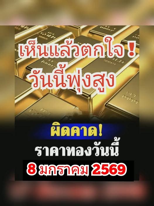 ราคาทองวันนี้ 8 มกราคม 2569 โดย สมาคมค้าทองคำ ประกาศราคาทองครั้งที่ 1 (เปิดตลาด) เมื่อเวลา 09.06 น. ปรับตัวลดลง 50 บาท เมื่อเทียบกับประกาศราคาซื้อขายครั้งสุดท้ายของเมื่อวาน(พุธ) ที่ระหว่างวันมีการประกาศราคาทองคำทั้งหมด 20 ครั้ง รวมราคาปรับตัวเพิ่มขึ้น 200 บาทไม่มีคำอธิบาย