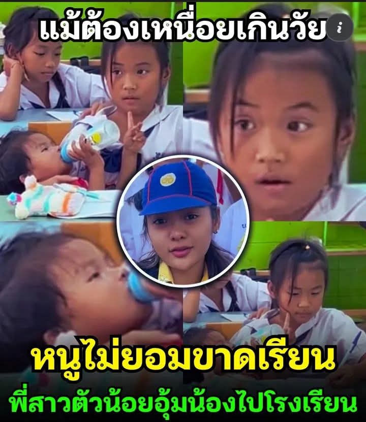 ครูขา หนูพาน้องมาเรียนด้วยได้มั้ย แม่ไปทำงานหนูเลยต้องเลี้ยงน้อง หนูไม่อยากขาดเรียนเลยพามาด้วย😢