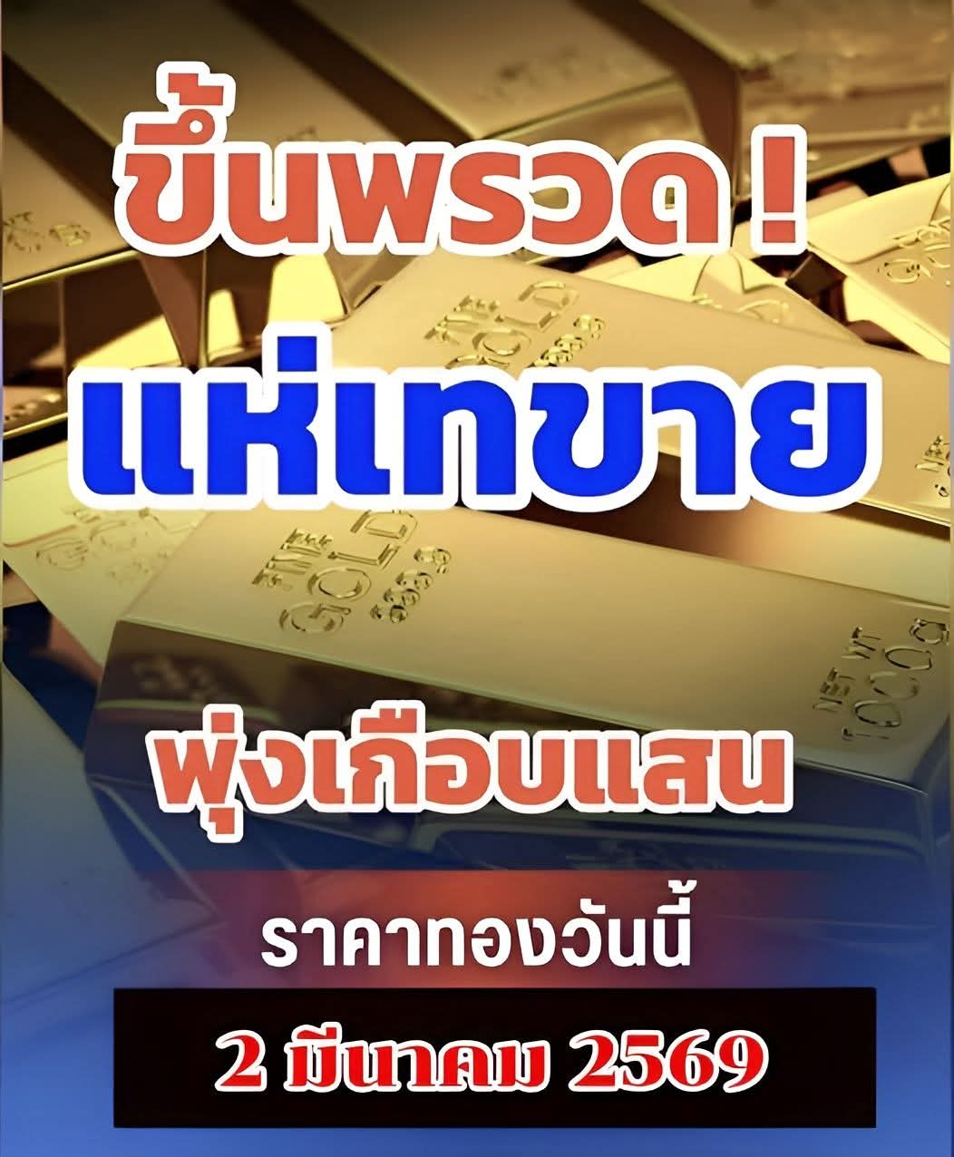 ล่าสุด วันที่ 2 มีนาคม 2569 มีรายงานว่า ราคาทองคำยังคงเท่าเดิมไม่เปลี่ยนแปลง โดยมีรายละเอียดดังนี้