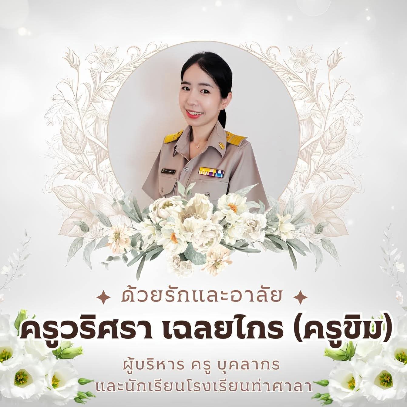 ขอแสดงความเสียใจอย่างสุดซึ้งต่อการจากไปของ ครูวริศรา เฉลยไกร (ครูขิม) ครูชำนาญการ โรงเรียนท่าศาลา จากเหตุการณ์อัคคีภัยเมื่อคืนที่ผ่านมา ครูผู้ทุ่มเทแรงกายแรงใจเพื่อลูกศิษย์เสมอมา ขอให้ดวงวิญญาณของครูขิมไปสู่สุคติในภพภูมิที่ดี ด้วยความรักและอาลัยยิ่ง คณะผู้บริหาร คณะครู และนักเรียนโรงเรียนท่าศาลา