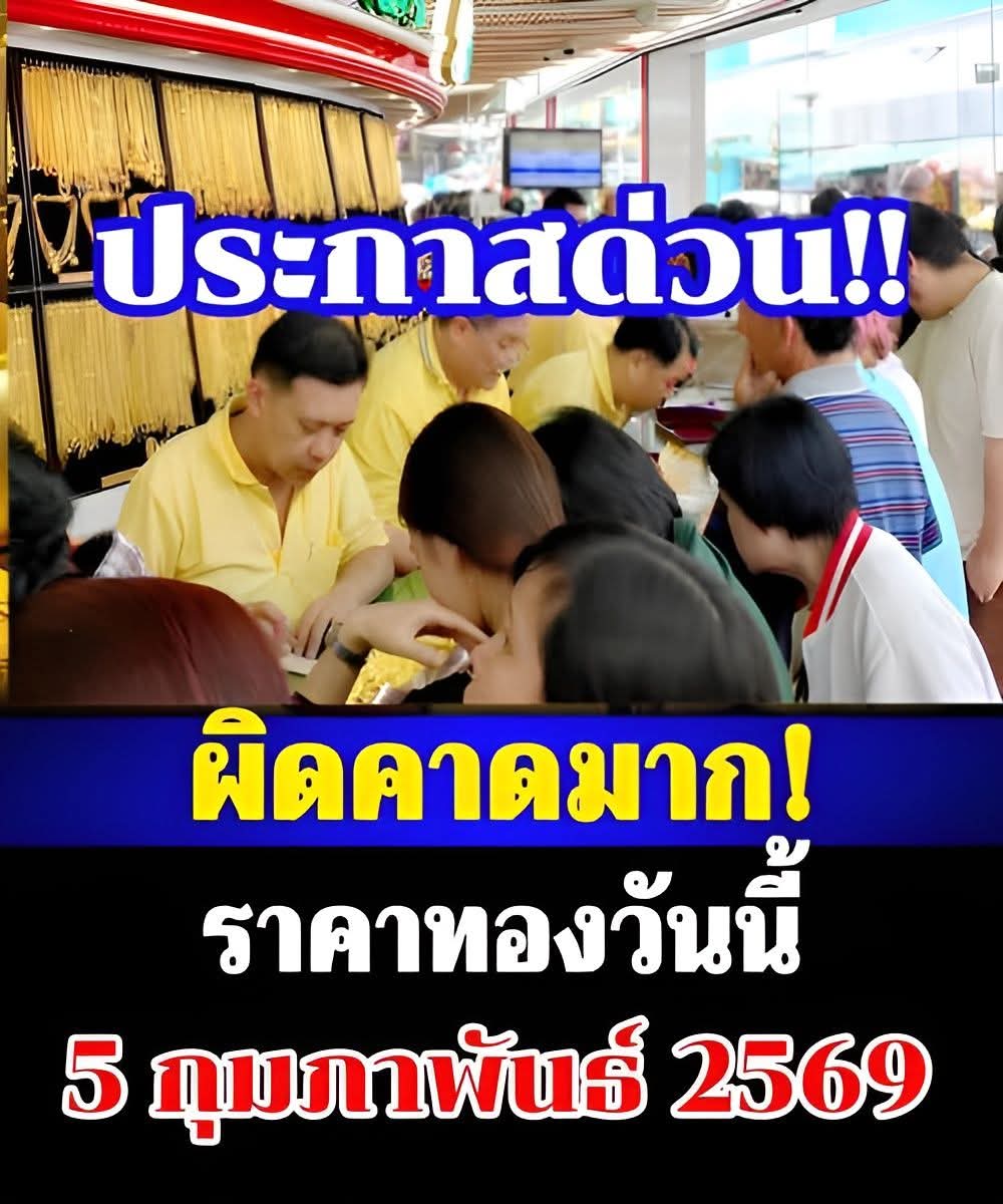 ราคาทองวันนี้ 5 กุมภาพันธ์ 2569 โดย สมาคมค้าทองคำ ประกาศราคาทองครั้งที่ 1 (เปิดตลาด) เมื่อเวลา 09.08 น. ปรับตัวขึ้นพรวดเดียว 2,100 บาท สู่บริเวณ 75,700 บาท เมื่อเทียบกับประกาศราคาซื้อขายครั้งสุดท้ายของเมื่อวาน(อังคาร) ที่ระหว่างวันมีการประกาศราคาทองคำทั้งหมดมากถึง 63 ครั้ง รวมราคาปรับตัวเพิ่มขึ้นแรง 2,450 บาท