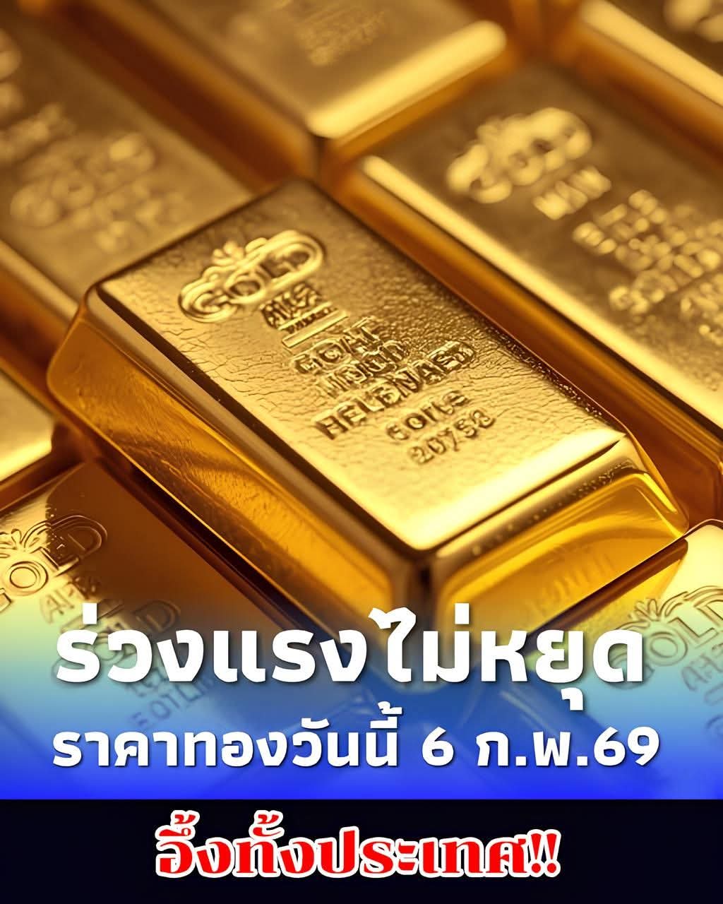 รายงานราคาทองประจำวันศุกร์ที่ 6 กุมภาพันธ์ 2569 ประกาศครั้งที่ 1 (เปิดตลาด) เมื่อเวลา 09.05 น. ปรับตัวลงแรงพรวดเดียว 1,300 บาท สู่บริเวณ 72,000 บาท เมื่อเทียบกับประกาศราคาซื้อขายครั้งสุดท้ายของเมื่อวาน(พฤหัสบดี) ที่ระหว่างวันมีการประกาศราคาทองคำทั้งหมดมากเป็นประวัติการณ์ถึง 102 ครั้ง รวมราคาปรับลงแรง 2,400 บาท