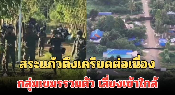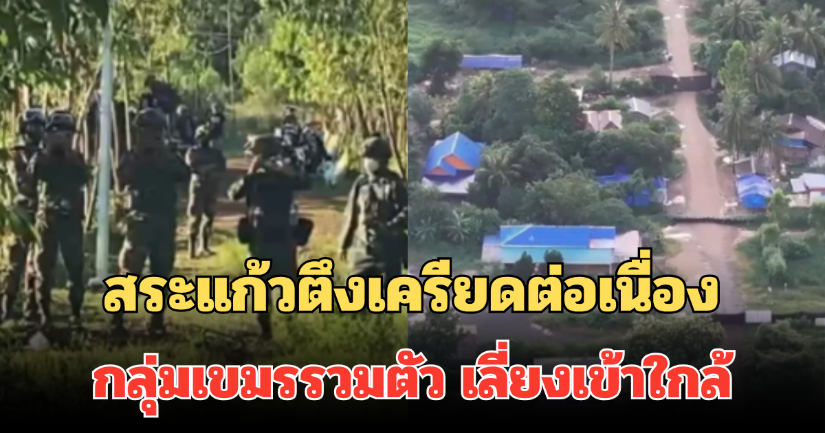 ล่าสุดเมื่อช่วงเช้าที่ผ่านมา เจ้าหน้าที่กองกำลังบูรพาได้ใช้โดรนบินสำรวจพื้นที่แนวชายแดนทั้งสองจุด เพื่อประเมินสถานการณ์และความเคลื่อนไหวของมวลชนทั้งสองฝั่ง ปรากฏว่าผลการตรวจสอบพบความเปลี่ยนแปลงที่น่าจับตาบริเวณ บ้านหนองหญ้าแก้ว พบกลุ่มประชาชนชาวกัมพูชาประมาณ 30-40 คนเริ่มรวมตัวอยู่บริเวณใกล้แนวรั้วลวดหนามในลักษณะรอดูสถานการณ์ บางส่วนถือกล้องโทรศัพท์ถ่ายภาพและพูดคุยกับเจ้าหน้าที่ของตนเอง