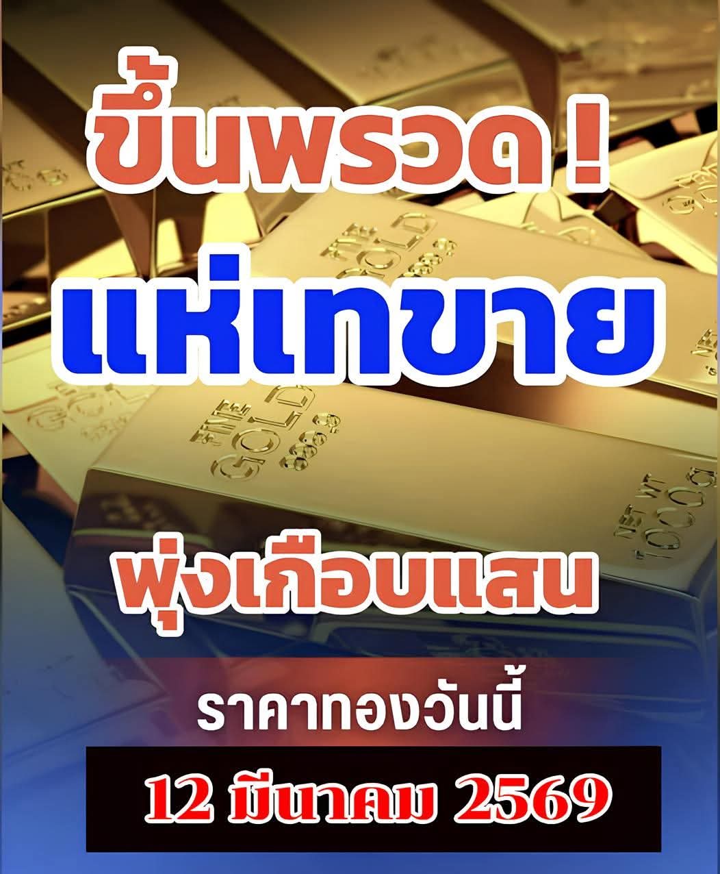 12 มีนาคม 2569 สมาคมค้าทองคำ ประกาศราคาทองคำครั้งที่ 1 เปิดตลาด เมื่อเวลา 09.10 น. โดยราคาทองคำในประเทศปรับตัวเพิ่มขึ้น 50 บาท จากครั้งก่อนหน้า สะท้อนการเคลื่อนไหวที่ยังสอดคล้องกับทิศทางตลาดทองคำโลก