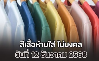 เตือนแล้วนะ! สีเสื้อห้ามใส่ ไม่มงคล วันที่ 12 ธันวาคม 68 (ความเชื่อส่วนบุคคล) Read More